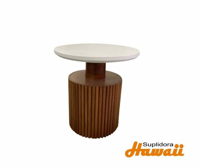 MESA LATERAL TABLILLA CILINDRO BLANCA C/NATURAL P.M