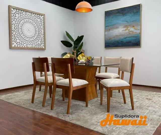 COMEDOR SOFIA 6/S NATURAL T/CRISTAL TAPIZ/CREMA P.M