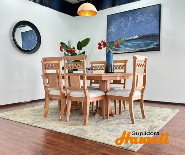 COMEDOR MAGALI 6/S NATURAL T/MADERA TAPIZ/CREMA E.P