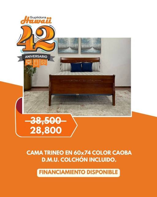 CAMA TRINEO EN 60x74 COLOR CAOBA D.M.U.