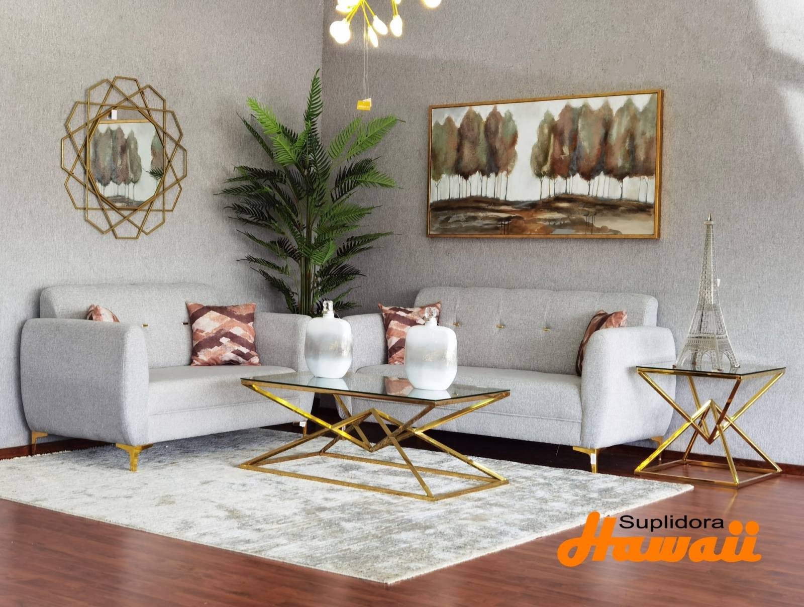 MUEBLE ARCADIA S/3 S/2 EM00003 GRIS D.E LINEA ECONOMICA ,INCLUYE SOFA DE SOS SOFAS DE TRES ,MESAS Y ADORNOS SE VENDEN POR SEPARADO.
