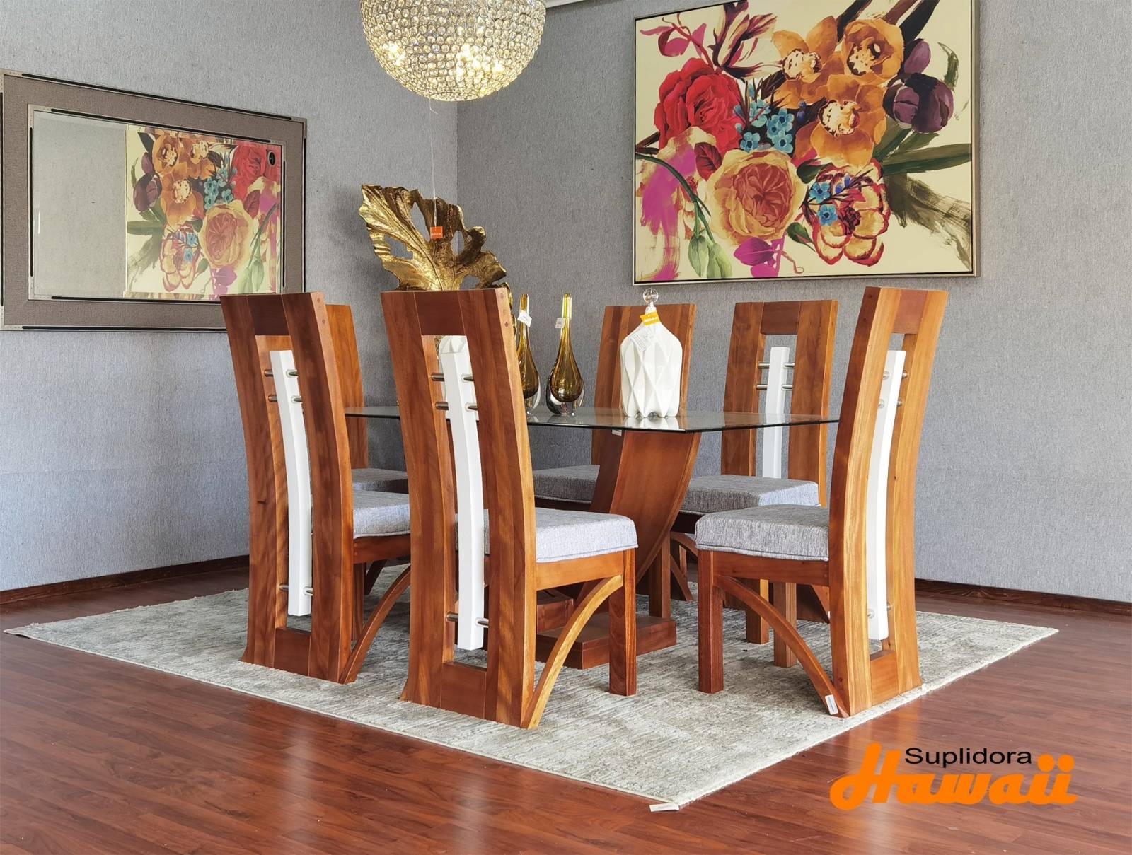 COMEDOR CAPRICHO NATURAL C/BLANCO 6/S TAPIZ/GRIS T/CRISTAL P.M.