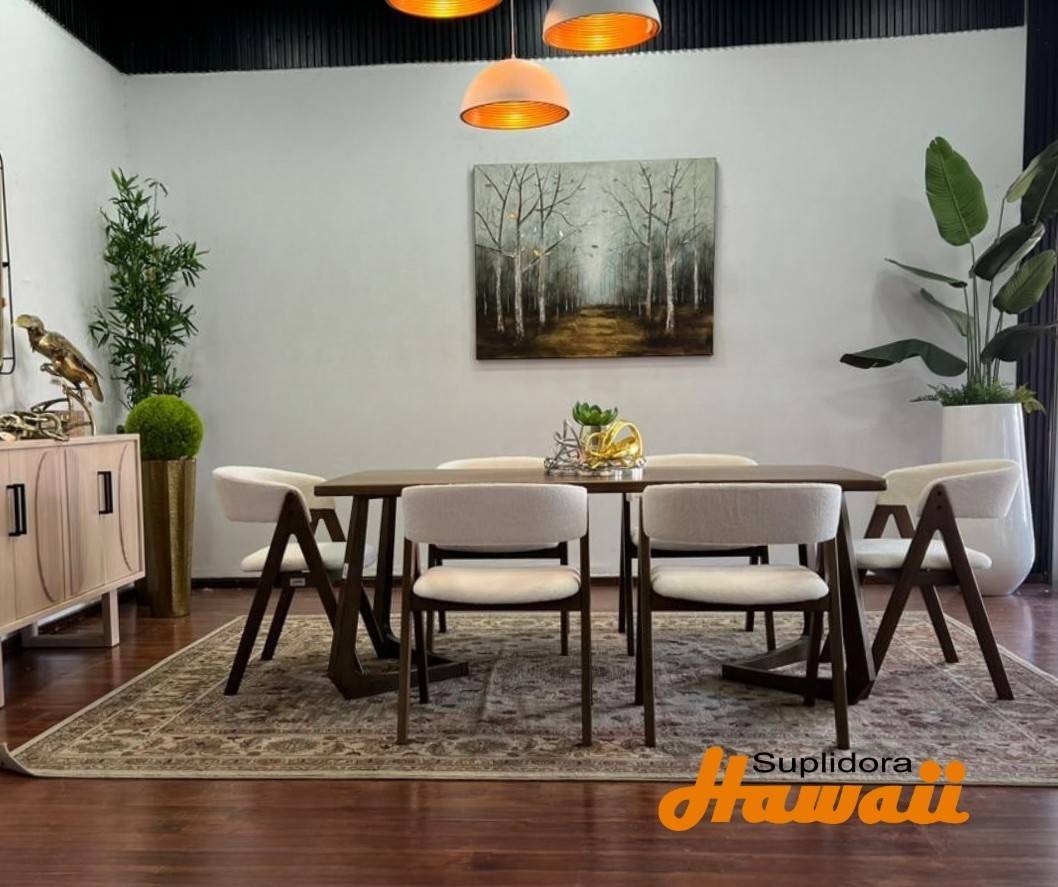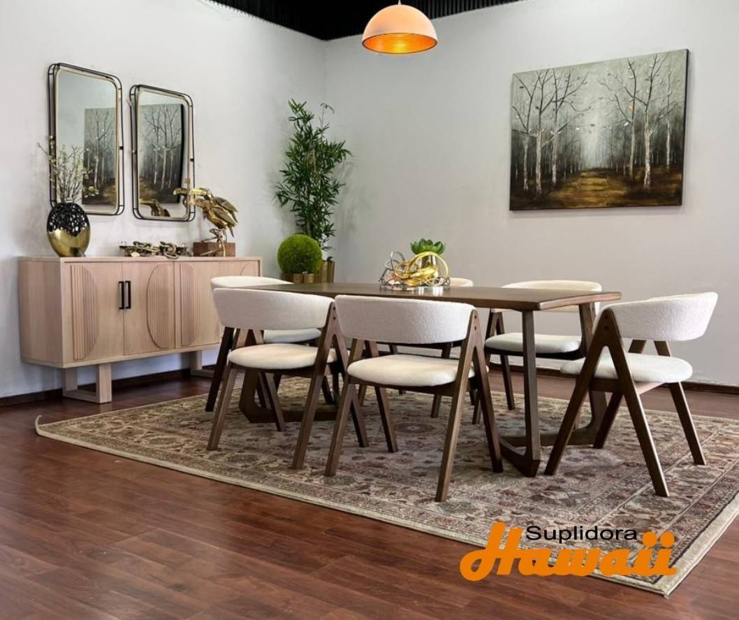 COMEDOR EN MADERA 6/S TB-8034/DC1052 T/MADERA TAPIZ/CREMA I.M