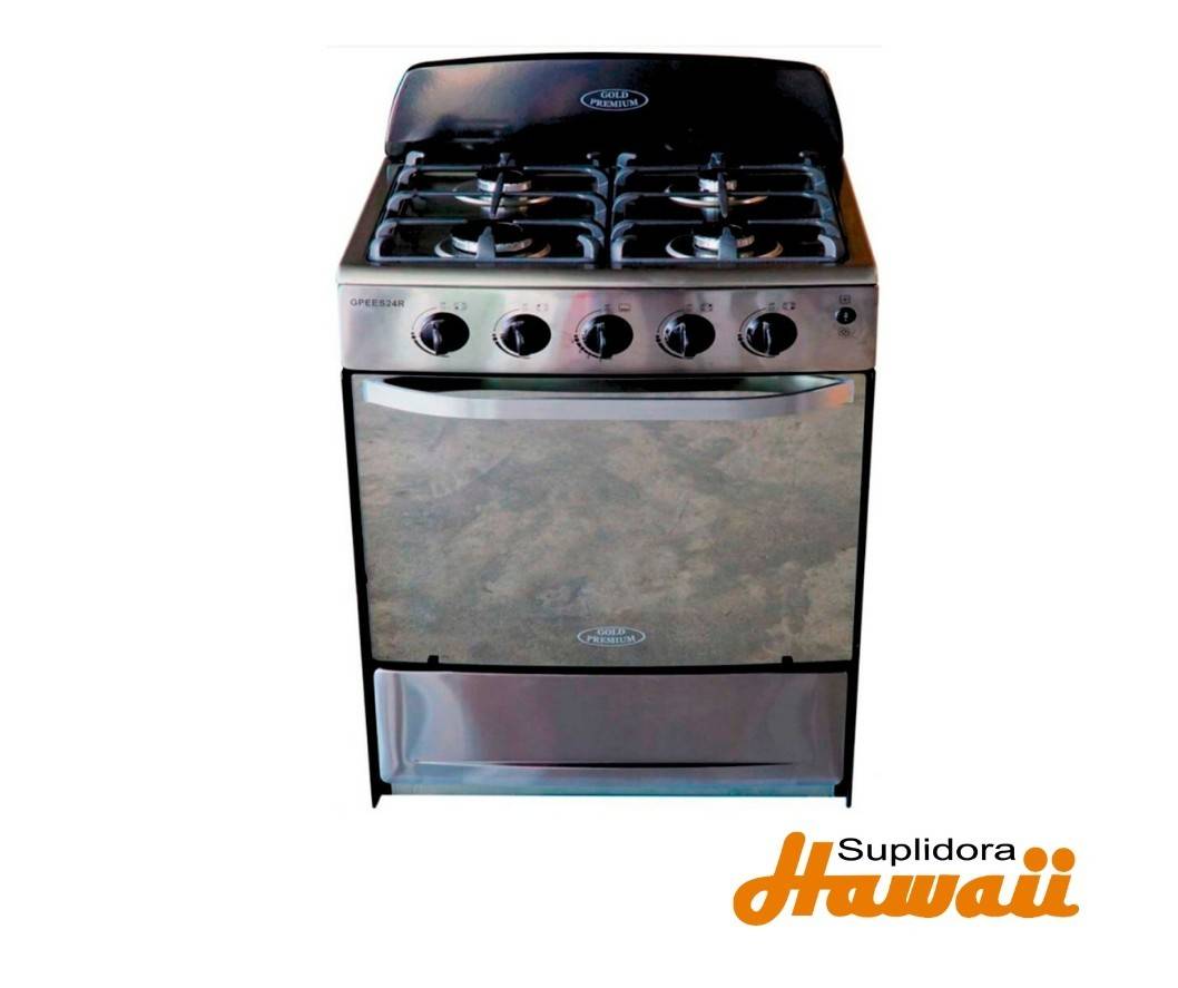 DESCRIPCIÓN Estufa gas independiente 24″, 4 hornillas, acero inoxidable. Cubierta en Acero inoxidable. Encendido Electrónico. Parrillas Hierro Fundido. Horno Visor Tipo Espejo. 2 Parrillas en el horno.