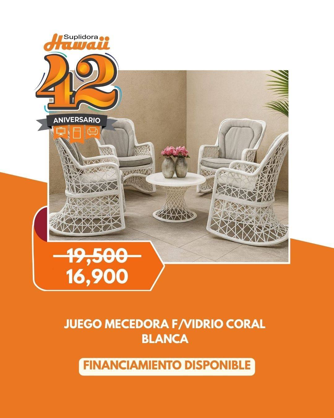 JUEGO MECEDORA F/VIDRIO CORAL BLANCA