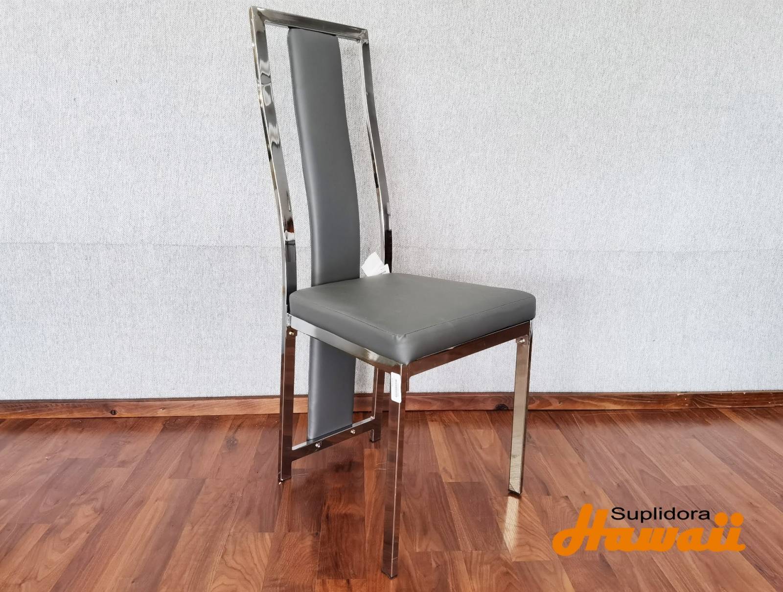 SILLA GRIS EN IMITACION PIEL DC7568-G-PP PATAS PLATEADAS RTR