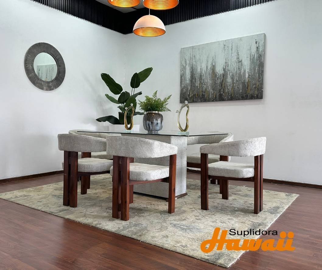 COMEDOR LUISA 6/S NATURAL OSC. T/CRISTAL TAPIZ/CREMA R.O
