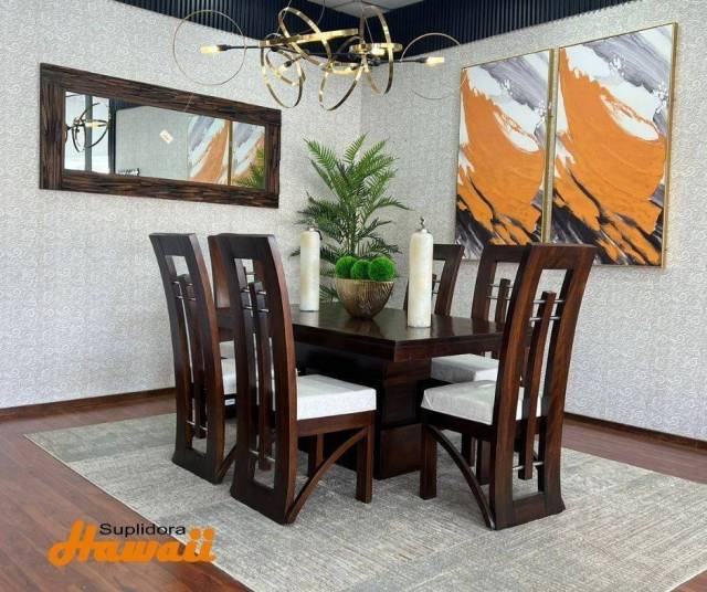 COMEDOR CINTA ENCERADA TAPIZ/CREMA 6/S T/MADERA CENTRO CRISTAL R.D.