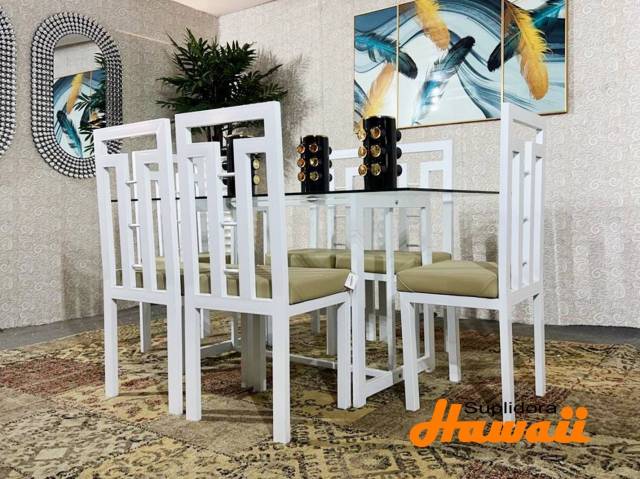 COMEDOR BUCAREST NATURAL TAPIZ/CREMA 6/S TOPE MADERA BLANCO C/ NATURAL