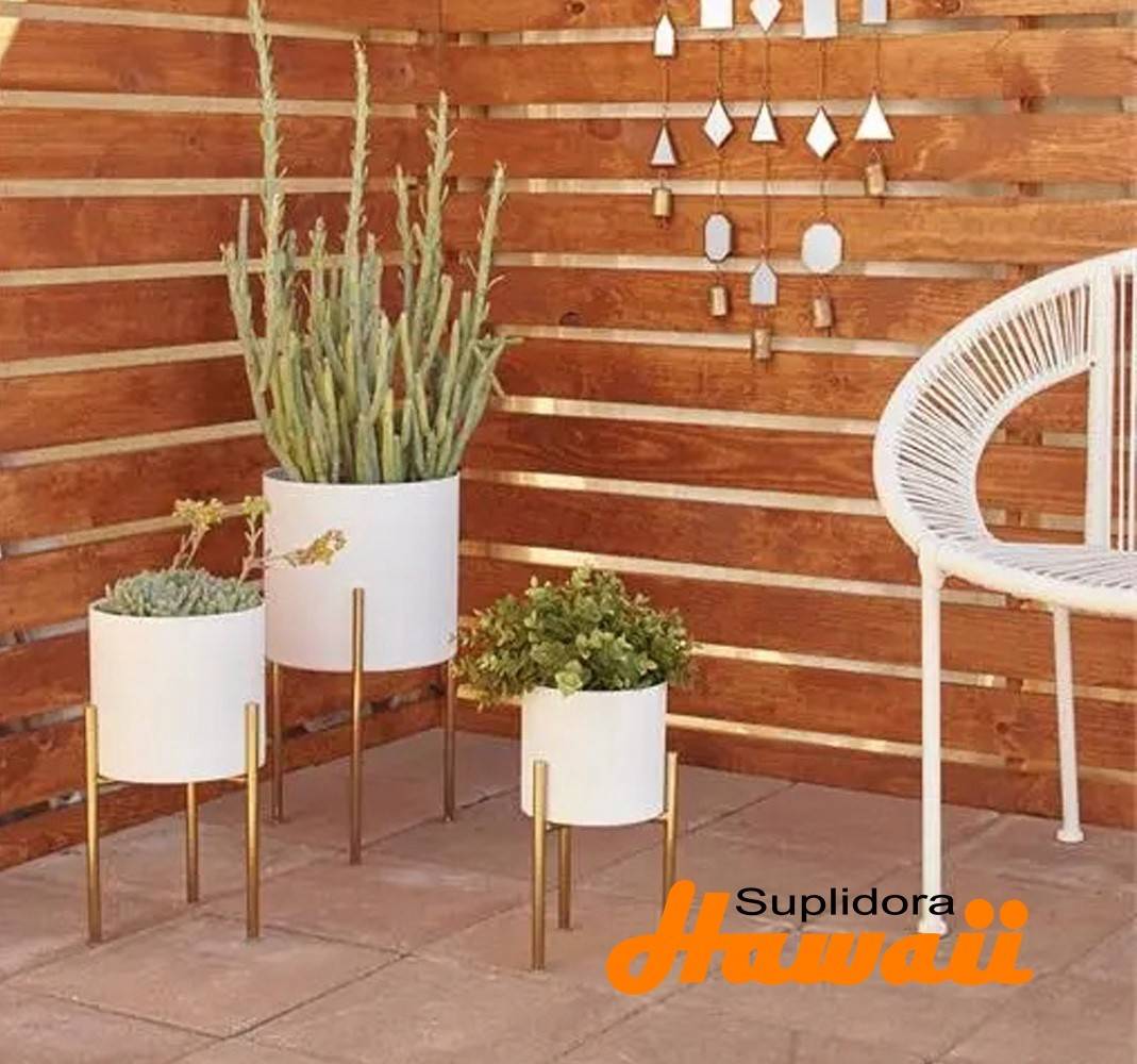 MACETERO S/3 CONTEMPORANEO 51948 METAL BLANCO/DORADO 18, 14, 12