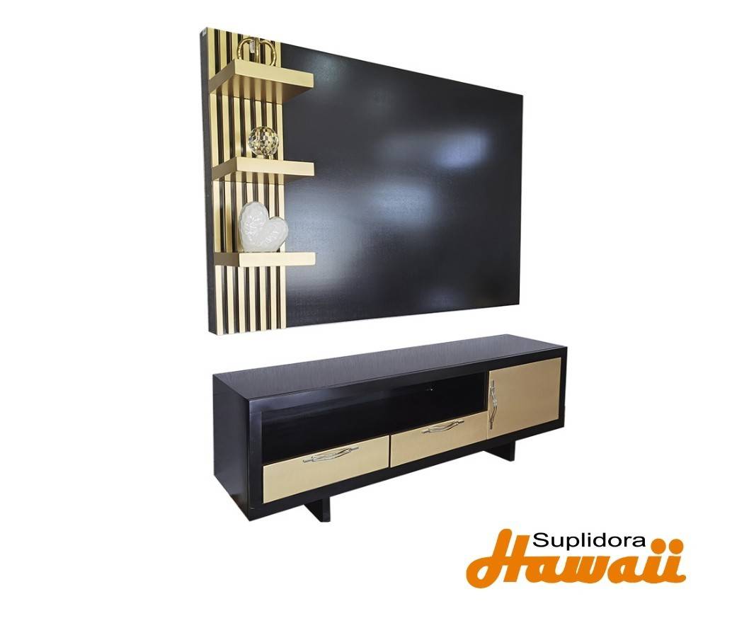 MUEBLE TV NEGRO CON DORADO C/ESPALDAR 72X17X24 PULGADAS